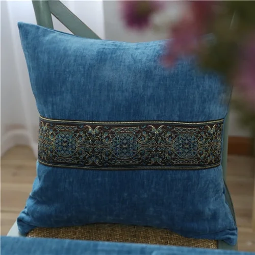 5Styles Embroidered Suede Cushion Bedding Cushion Lumbar Decorative Sofa Seat Car Soft Cushion Pillowcase Water Lake Blue