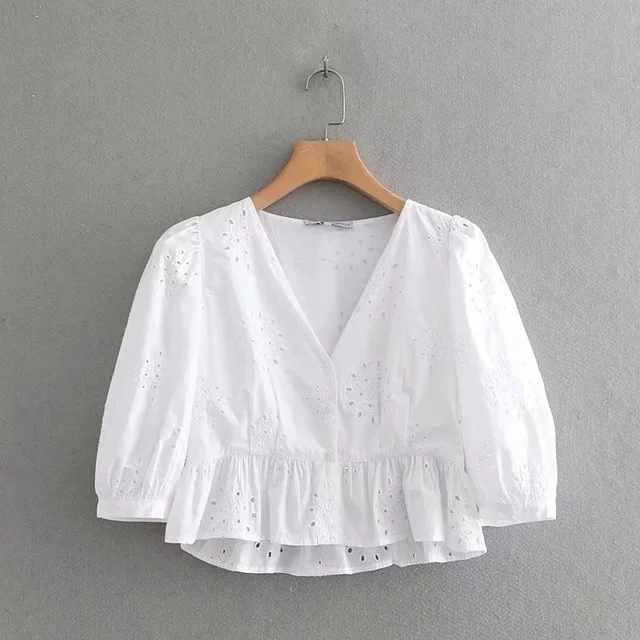 Fashion Summer Women Soild Shirt Lady Embroidered Hollow Sleeve Dress Casual V-Neck Women Dresses Short Loose Party Clothes