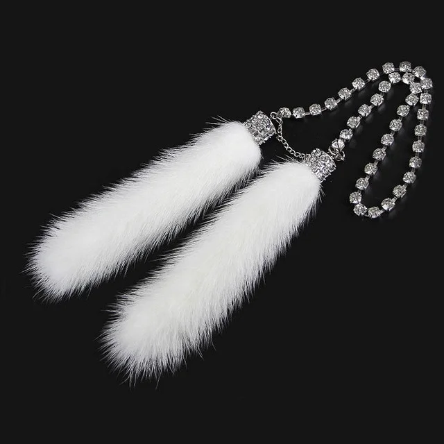 High-end Car Crystal Diamante Pendant Mink Fur Rearview Mirror Hanging Ornaments Charm Car Interior Decoration Accessories