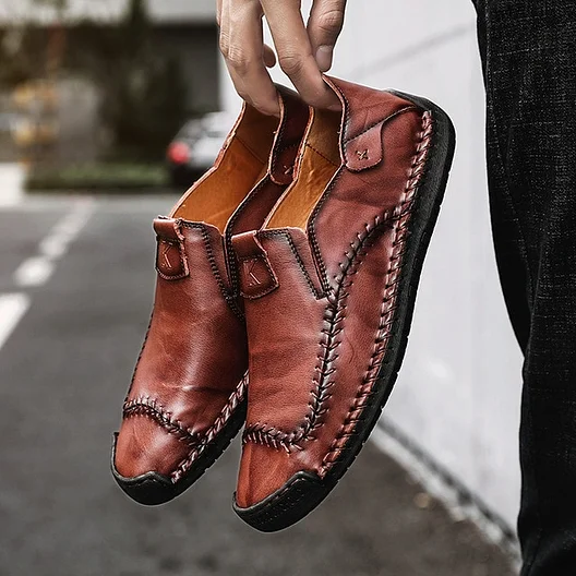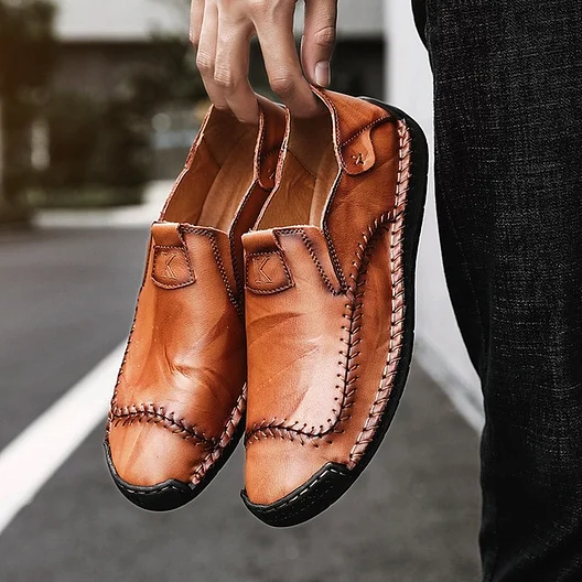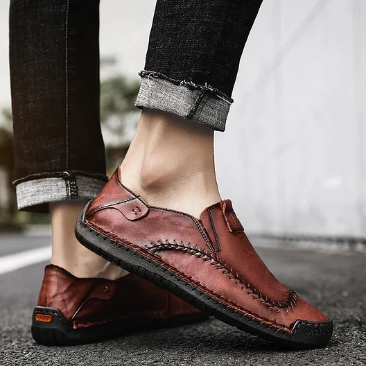 2019 Spring Leather Casual Shoes Men Quality Handmade Loafers Vintage Moccasins Slip On Rubber Flats Mens Designer Shoes Men