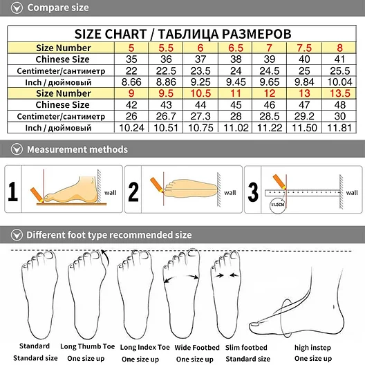 Note:please choose your size according to your foot length,don't choose size as your usual country size.the US/CN Size is not real US/CN Size,it is just transform CN Size by our rules.