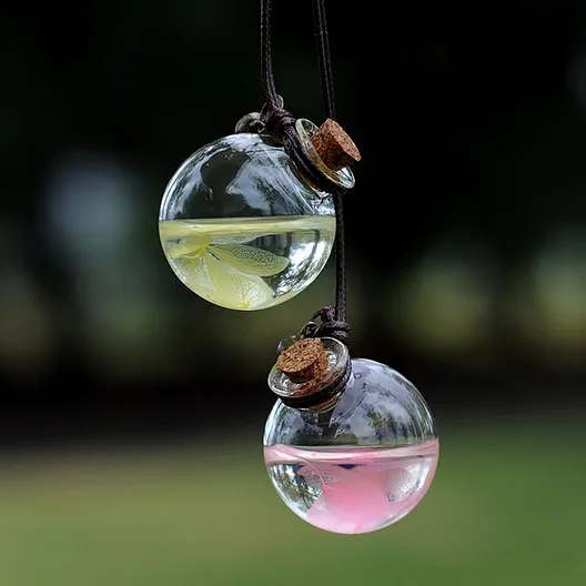 Car Pendant Glass Perfume Empty Hanging Bottle With Flower Auto Interior Decoration Perfume Container With Wood Cap Ornaments