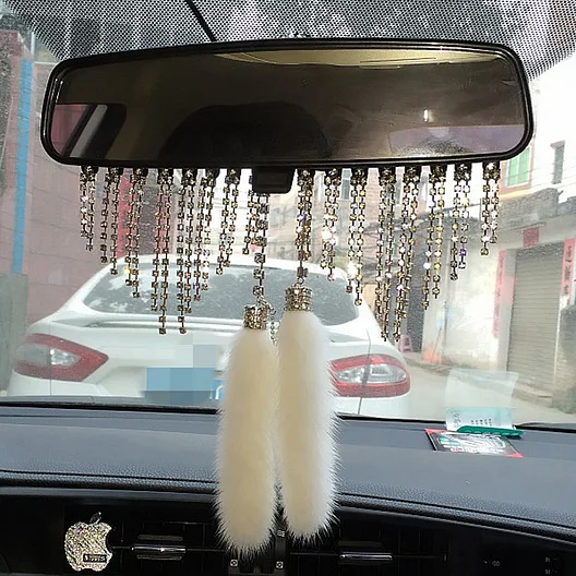 High-end DAD Car Diamante Pendant Fox Fur Ornaments Rearview Mirror Adornment Auto Furnishing Articles Accessories Product Information: